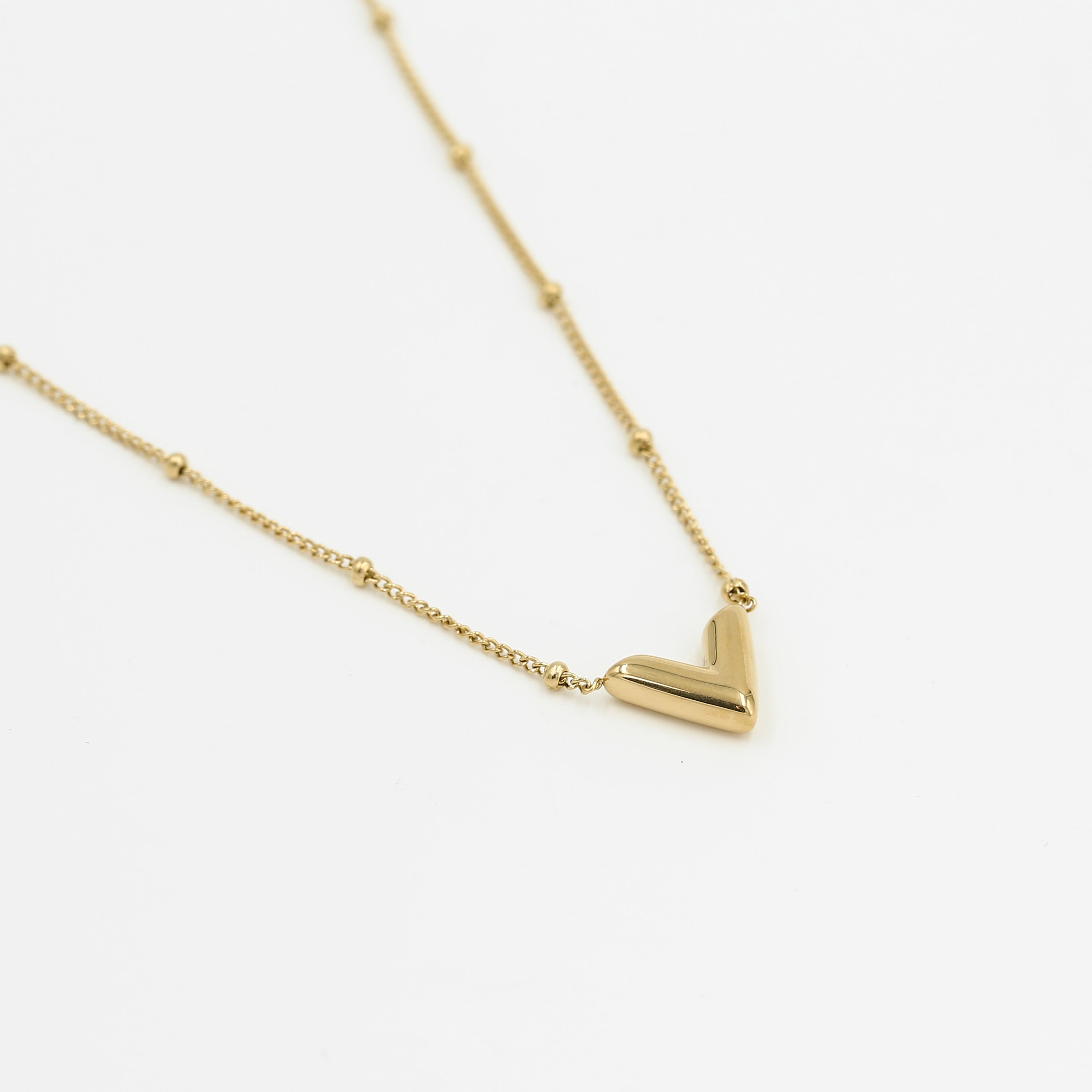 Taupe kralenketting met gouden stainless steel hartje