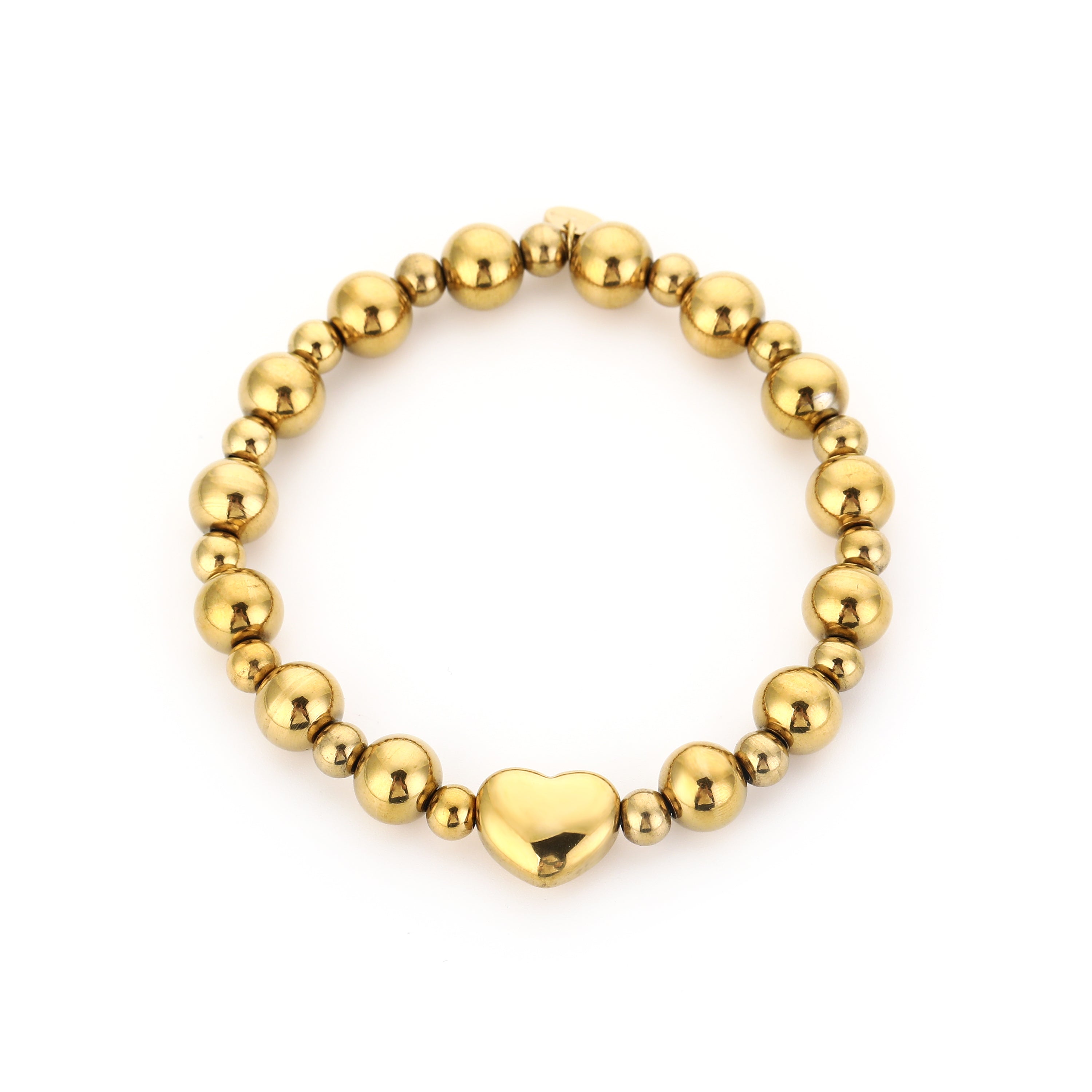 Gouden stainless steel kralenarmband met hart